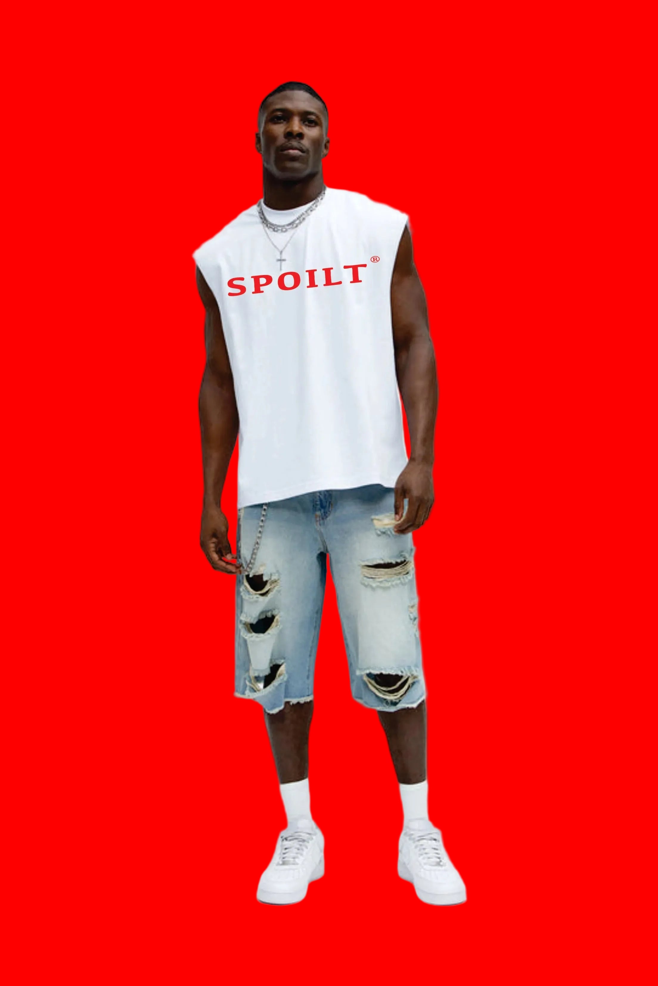 RED SPOILT ®️ TANK TEE IN WHITE